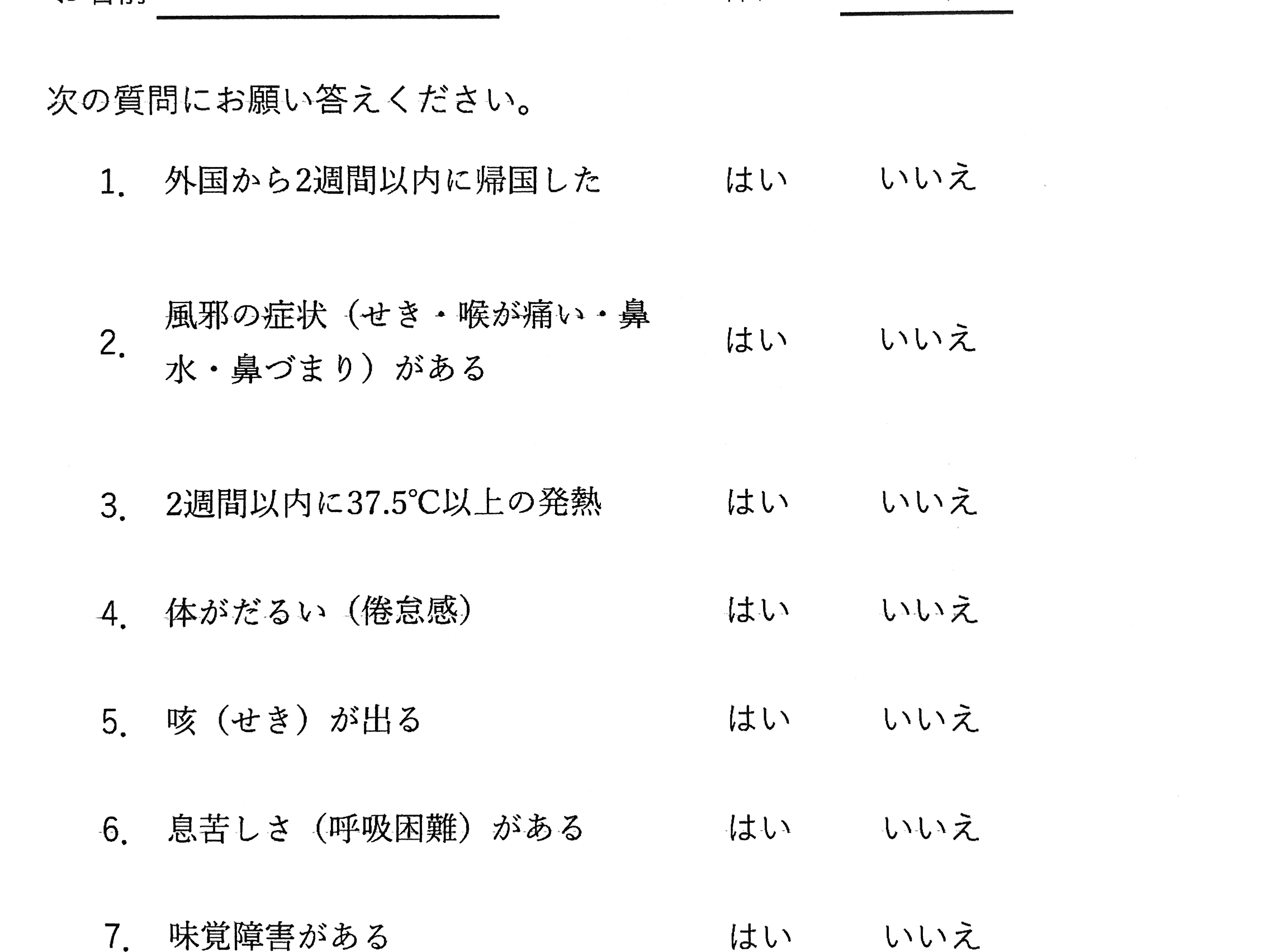院内感染防止のため ご来院時に検温と問診票への記入をお願いしております。