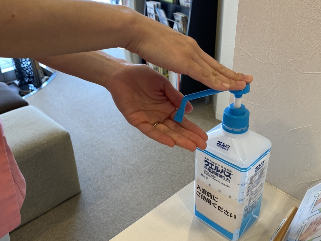 入室前でのアルコールの手指消毒、治療前の薬液うがいをお願いしておりますのでご協力の程 よろしくお願いいたします。