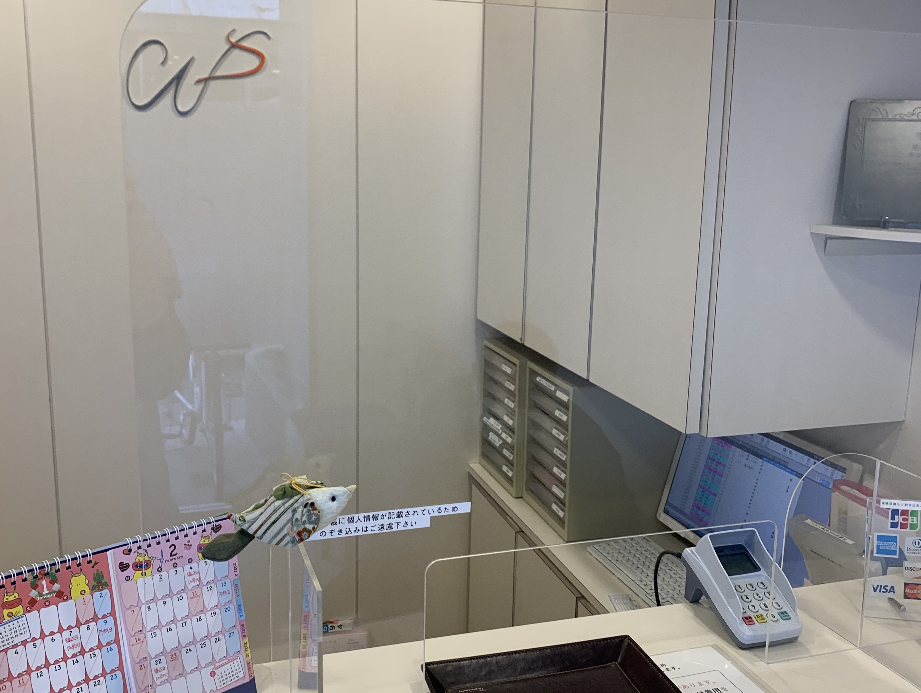 院内クラスター防止のため スタッフは マスク・ゴーグル・フェイスシールドを着用しております。また受付にはパーテーションを設置しております。